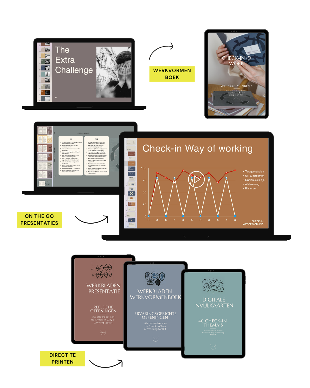 - Alle Check-in@Work invul-bladen (voor zowel individuele- als teamreflectie)